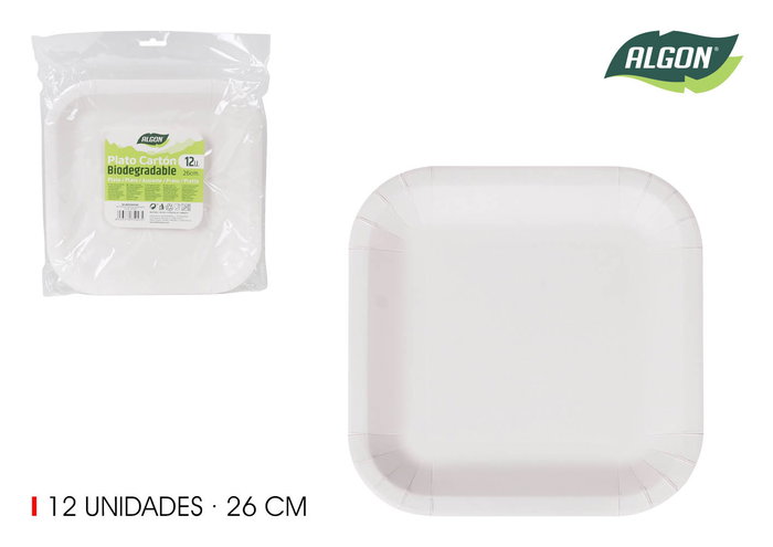 Set-12 Plato Cartoncuad. L/Soja 26Cm Algon