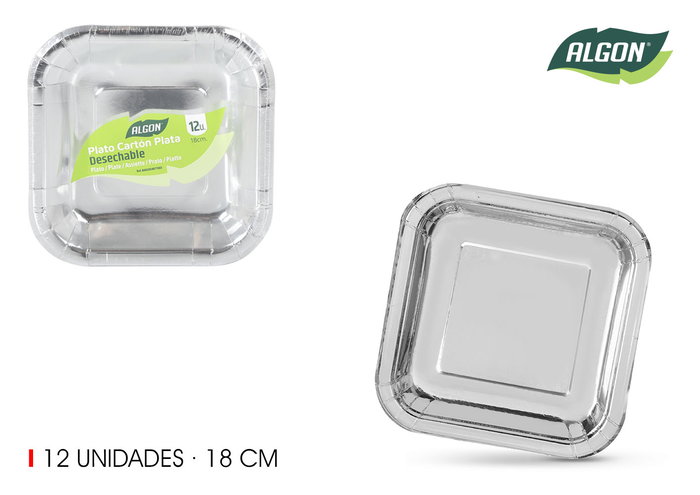 Set-12 Plato Carton Plata Cuad.18Cm Algon