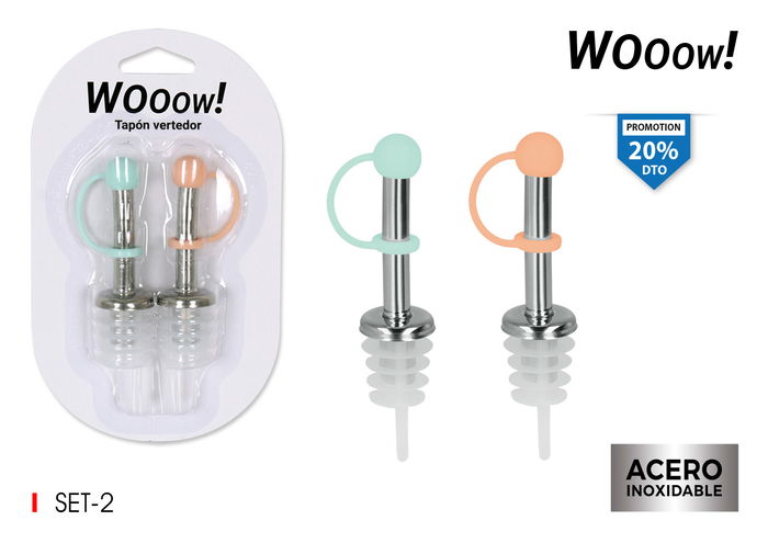 Wooow Set de 2 Tapones Vertedor con Tapón, 9.5 cm Ancho, 15.7 cm Largo, 2 cm Alto (24 Unidades)