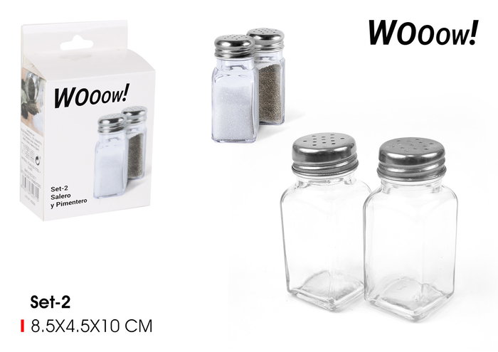 Wooow Set-2 Salero Y Pimentero Privilege 4 cm x 8.5 cm x 9.7 cm (24 Unidades)