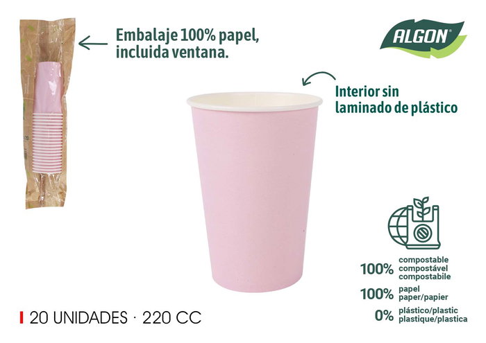 Set-20 Vaso Carton Rosa Baby 220Cc Algon