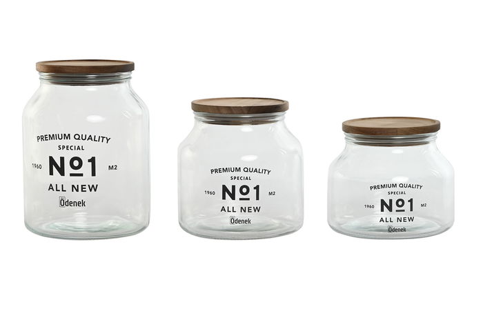 DKD Home Decor Bote Basicos Set 3 Piezas 16 x 21 x 16 cm Cristal y Acacia Natural Apto para Lavavajillas