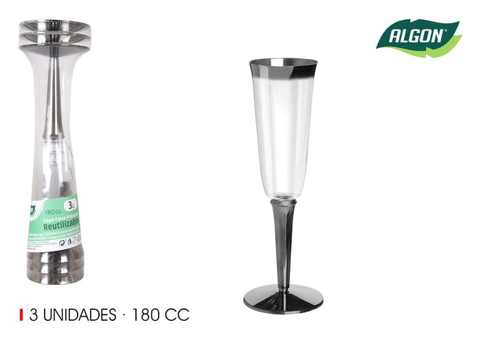 Set-3 Copa Cava Pie-Boca Plata 180 Algon