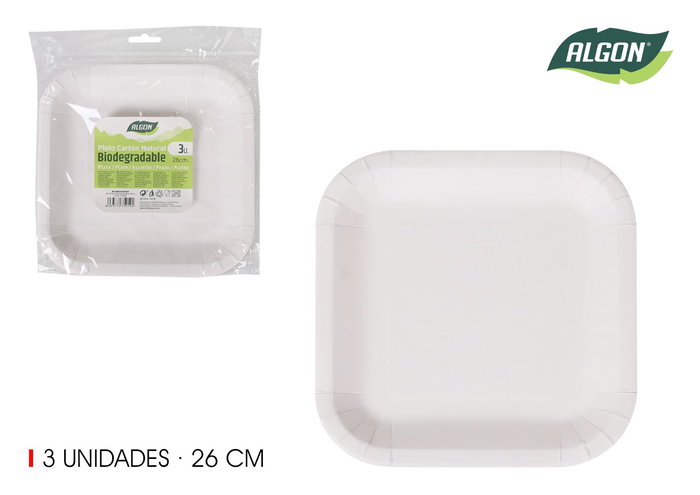 Set-3 Plato Cuad.Cart Natural 26Cm Algon