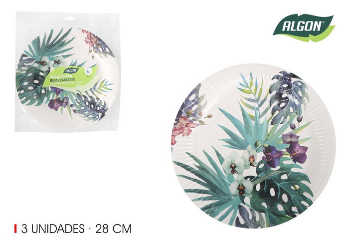 Algon Set 3 Platos Cartón Redondos Diseño Tropic 28.5 cm (24 Unidades)