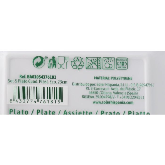 Set-5 Plato Cuad. Plast. Eco. 23Cm Algon