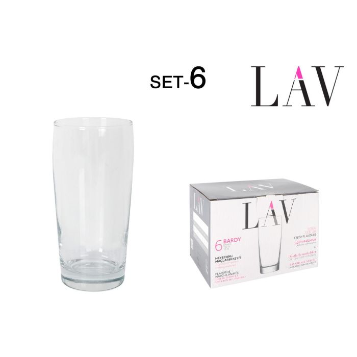 LAV Set 6 Vasos Cerveza 350 cc con 6.5 cm Ancho, 14 cm Alto, 6.5 cm Largo (8 Cajas)