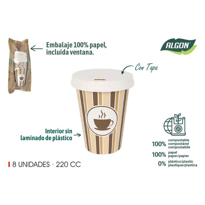 Set-8 Vaso Carton Cafe C/Tapa 220Cc Algo