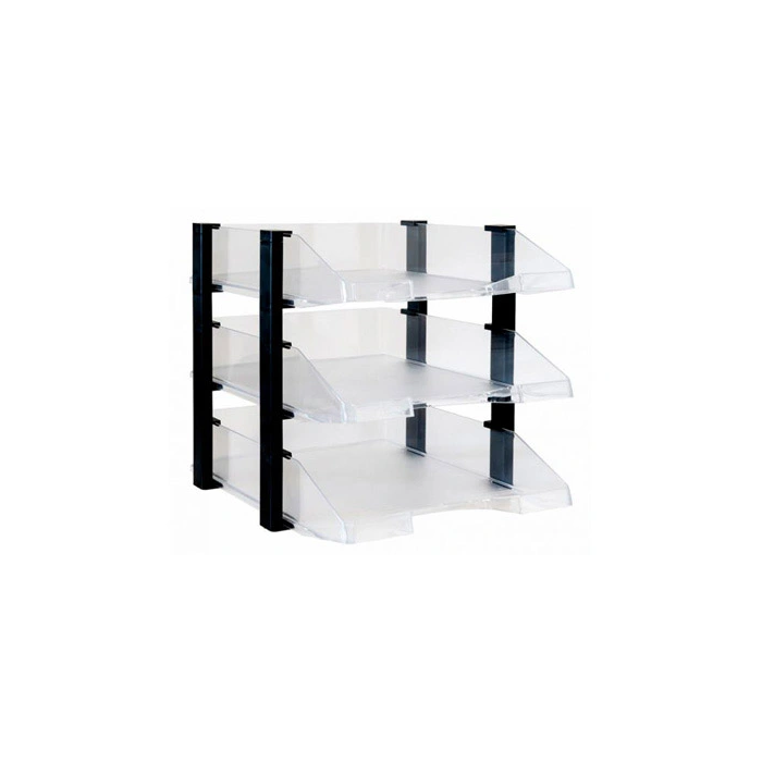 Archivo 2000 Bandeja sobremesa archivo JumboRack, plástico transparente con elevadores negro, conjunto de 3 bandejas, 350x285x280 mm