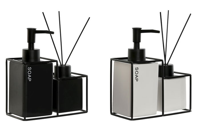 DKD Home Decor Dispensador de Baño Blanco y Negro Dolomita Metal 8 x 17 x 14.5 cm Set de 2