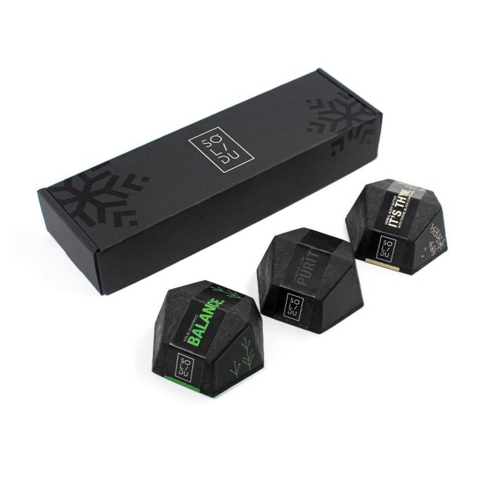 - Gel de Baño Sólido ROCK YOUR BODY (65 gr): Combina amyris, incienso y bergamota para una sensación de arraigo y relajación. La arcilla de caolín exfolia suavemente y el aceite de oliva retiene la hidratación.