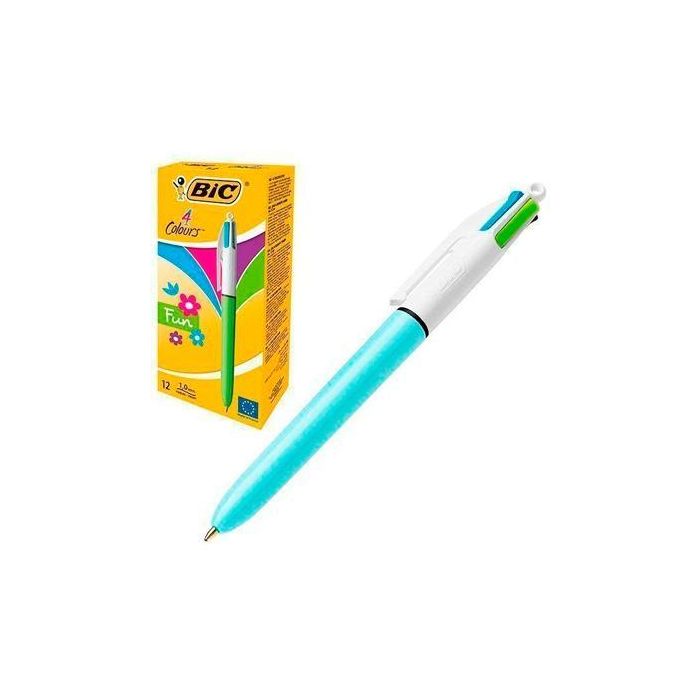 Bic Bolígrafo 4 Colores Fun Pastel Cuerpo Blanco-Azul Caja 12 Ud