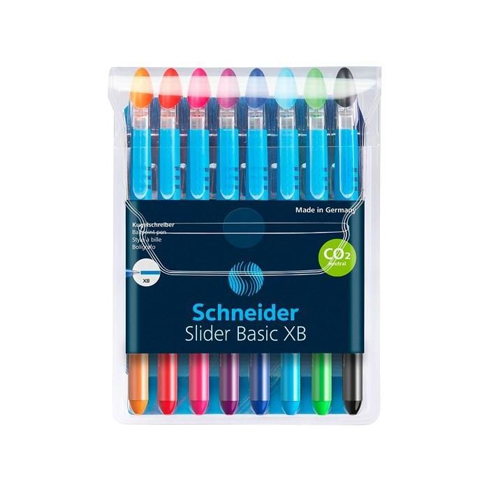 Schneider Bolígrafo Slider Basic F Estuche 6 Ud + 2 Gratis con Tecnología Viscoglide