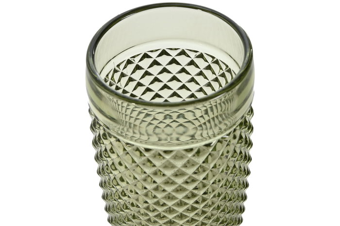 DKD Home Decor Copa Diamond Garbo Básicos Grabada, Color Verde, 150ml, Set de 6 Piezas, Vidrio, 7 x 20 x 7 cm