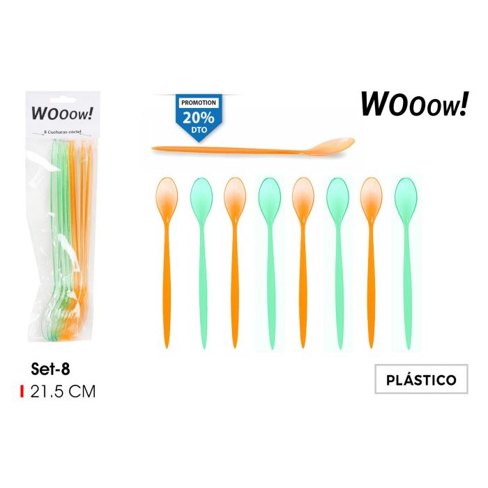 Wooow Set 8 Cucharas Cocktail 8 cm ancho x 27 cm alto x 3 cm largo (48 Unidades)