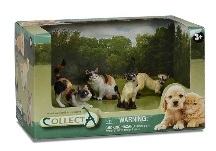 Formato en Caja Abierto con 4 unidades de animales pertenecientes a la familia de Perros y Gatos. Incluye 4 gatos de diferentes tamaños.