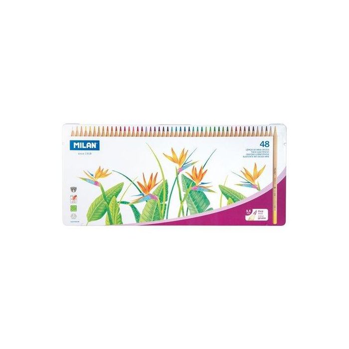 Milan Lápices de Colores Caja Metálica 48 Unidades Mina Gruesa Ø3,5 mm