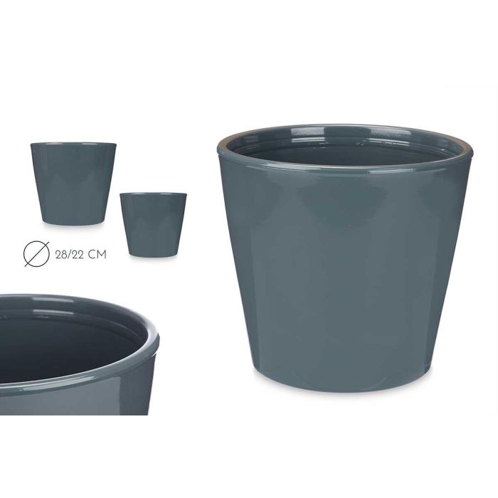 SET 2 MACETAS CERAMICA CONICA 22 28CM ANTRACITA