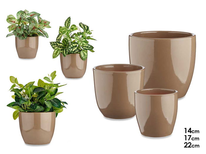 SET 3 MACETAS CERAMICA ABOMBADA 14 17 22CM TAUPE