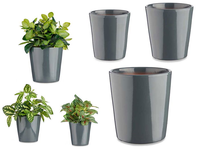 SET 3 MACETAS CERAMICA CONICA 14 17 22CM ANTRACITA