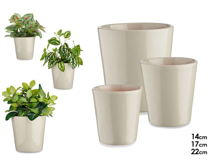 SET 3 MACETAS CERAMICA CONICA 14 17 22CM GRIS