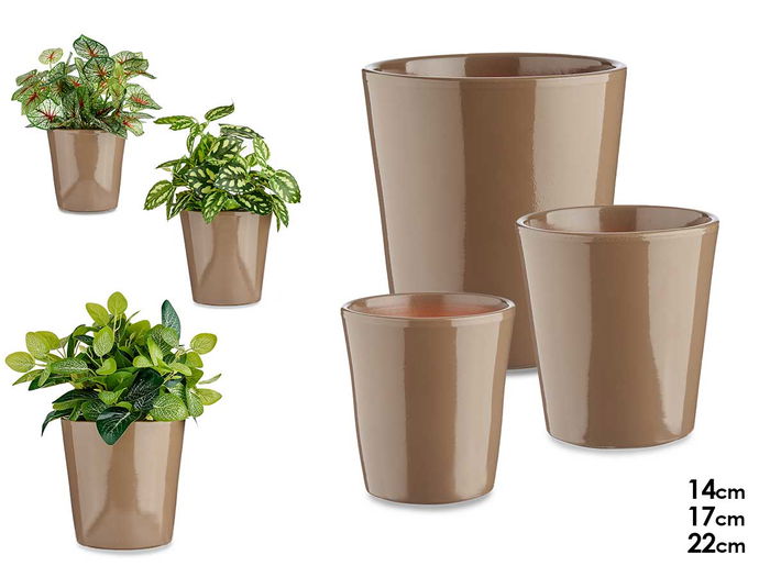SET 3 MACETAS CERAMICA CONICA 14 17 22CM TAUPE