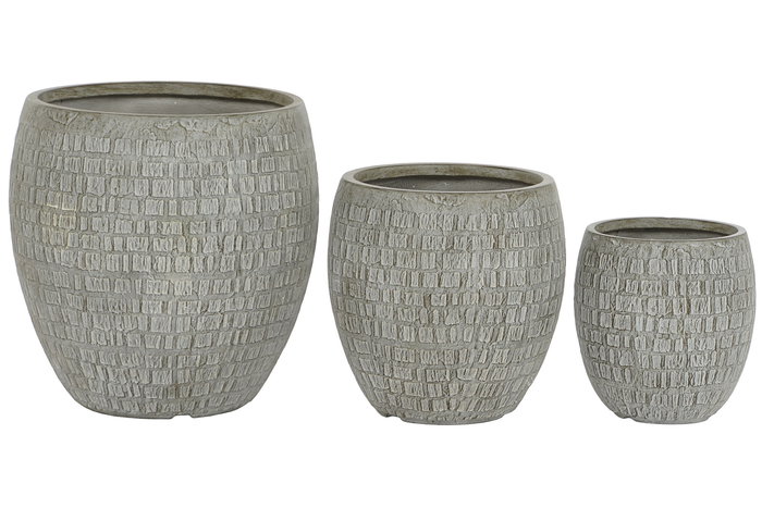 DKD Home Decor Set 3 Macetas Terraza Jardin Gris Magnesia Fibra Vidrio 55x55.5x55 cm