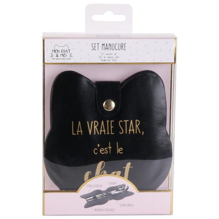 - Cuida tus uñas con este set de manicura con estuche en forma de cabeza de gato.
