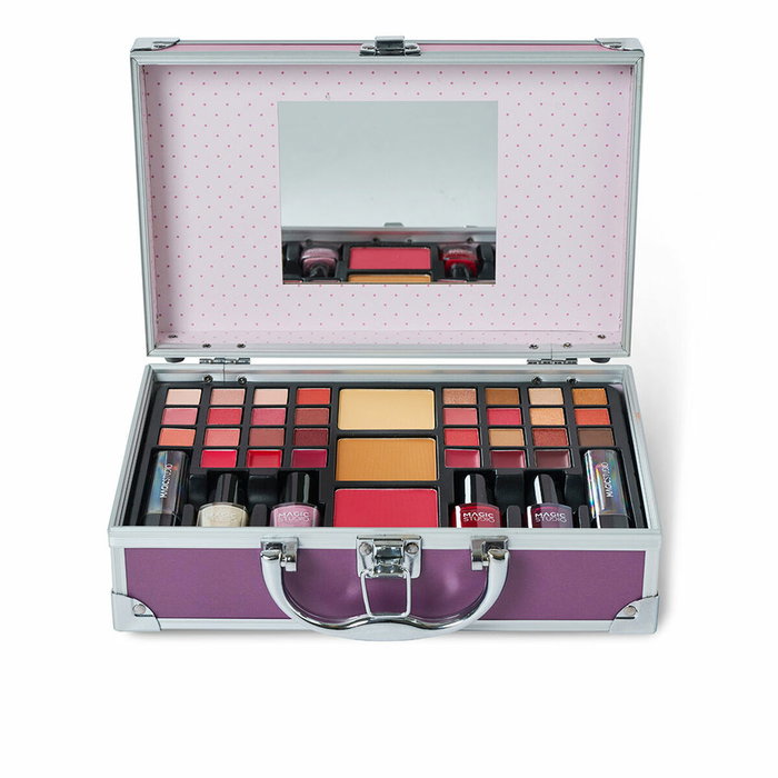 - El set contiene: 24 sombras de ojos + 6 brillos de labios + 4 esmalte + 3 bronceadores + 2 labiales + lápiz de ojos + aplicadores + brochas