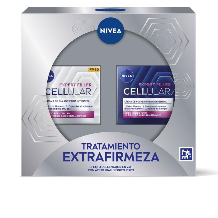 El Set de Maquillaje CELLULAR FILLER de Nivea es un tratamiento cosmético diseñado especialmente para la mujer que busca una solución integral para el cuidado facial con énfasis en la firmeza de la piel. Este estuche contiene 2 piezas, que incluyen una crema de día y una crema de noche, concebidas para actuar complementariamente en las diferentes fases del cuidado cutáneo. La crema de día hidrata y protege la piel durante las horas de actividad, mientras que la crema de noche está formulada para regenerar y reafirmar la piel durante el descanso, ayudando a mejorar la elasticidad y textura del rostro. Aunque el set no indica protección solar (SPF), su formulación específica en la línea Cellular Filler se orienta a reforzar la estructura celular de la piel, contribuyendo a un aspecto más firme y rejuvenecido. Pertenece a la categoría de cremas de rostro que combinan eficacia y sencillez para un uso cotidiano, aptas tanto para mujeres como para un uso unisex si se desea, adaptándose a diversas necesidades cutáneas. Este pack es especialmente relevante para pieles maduras o que requieren un tratamiento de firmeza intensivo que se integra con facilidad en la rutina habitual de belleza. El conjunto ofrece la comodidad de un tratamiento completo con la confianza respaldada por la reconocida experiencia de Nivea en cosmética facial, proporcionando una fórmula equilibrada adecuada para su aplicación diaria tanto por la mañana como por la noche. En definitiva, este estuche Cellular Filler es una opción práctica y especializada para quienes buscan un cuidado facial dirigido a mantener y mejorar la firmeza y apariencia saludable de la piel.
