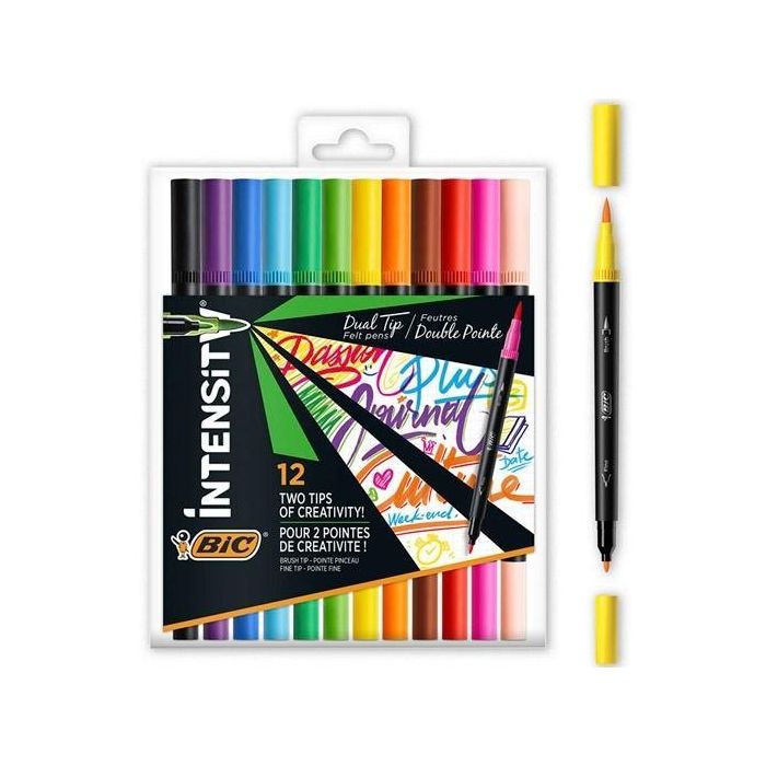 Bic Rotuladores Intensity Tip Felt Pens Punta Fina-Pincel Colores Surtidos Vivos Blíster 12 Ud