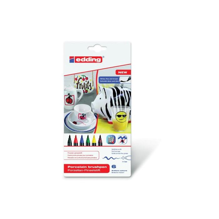 Edding Estuche Rotulador para Cerámica Colores Básicos 4200-6-S-000 (Negro, Azul, Marrón, Verde, Rojo, Amarillo) - 6 Unidades