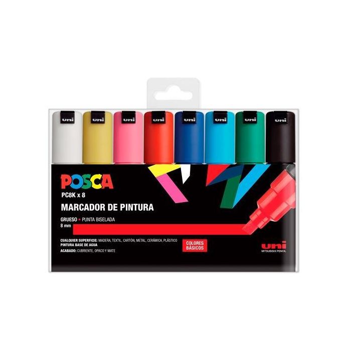 POSCA Marcador PC-8K-8C No Permanente Punta Biselada 8.0 mm Colores Surtidos Basic - Estuche 8U-