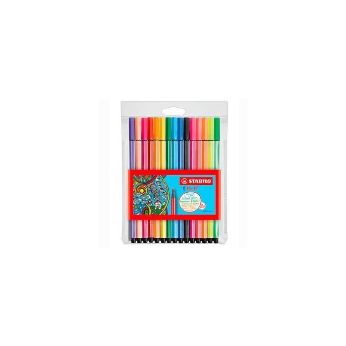 Stabilo Rotulador Pen 68, Estuche con 15 Colores Surtidos (10 Estándar + 5 Neón), Punta Fina 1mm, Acuralables para Escribir y Colorear