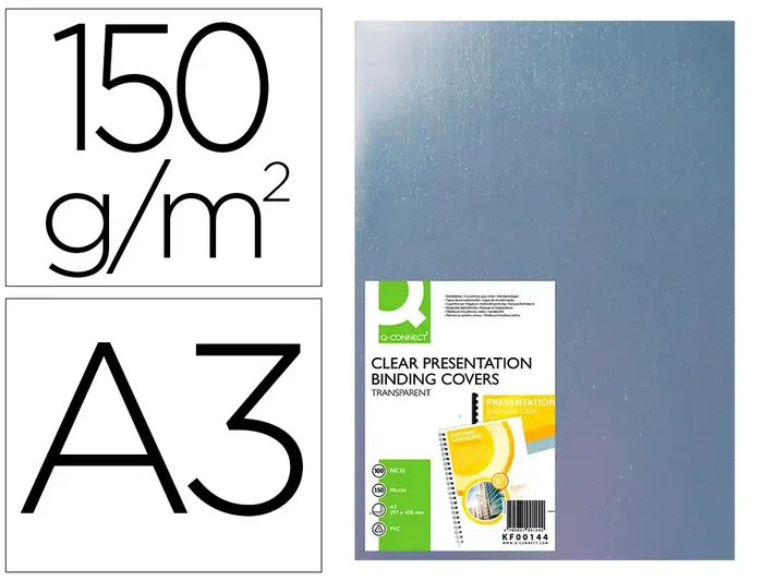 Láminas en PVC de diferentes grosores y formatos para encuadernación en espiral, canutillo, anillas y otros. El pack de 100 unidades.