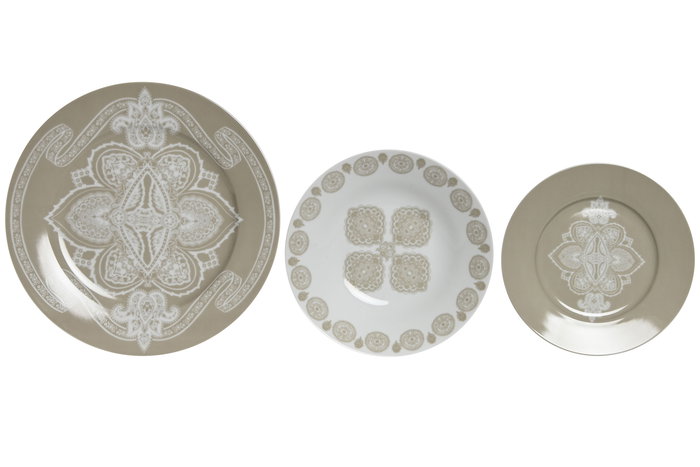 DKD Home Decor Delhi 2023 Vajilla Porcelana Beige Blanco Set 18 Piezas 27 x 2 x 27 cm