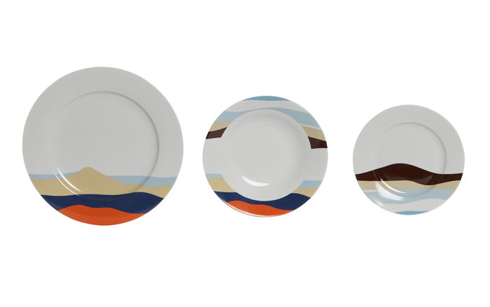 DKD Home Decor Teide 2023 Vajilla Tropical Porcelana Azul Multicolor Set de 18 piezas 27 x 2 x 27 cm