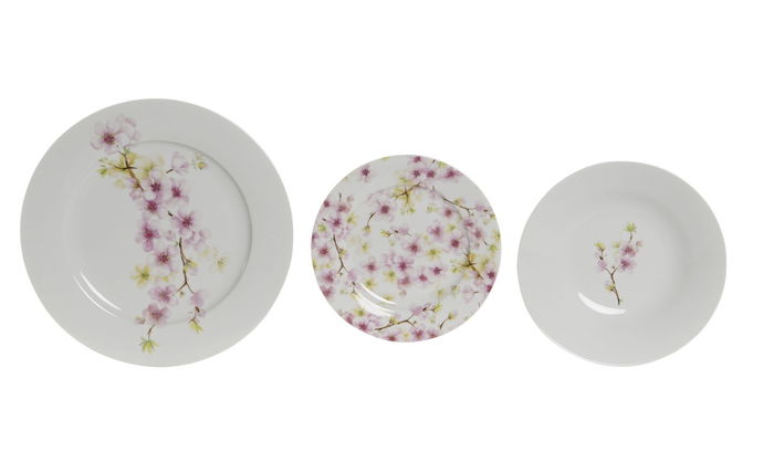 DKD Home Decor Vajilla Romantico Almendro 2024 Porcelana Set de 18 Piezas Rosa Verde Blanco 27 x 27 x 2 cm