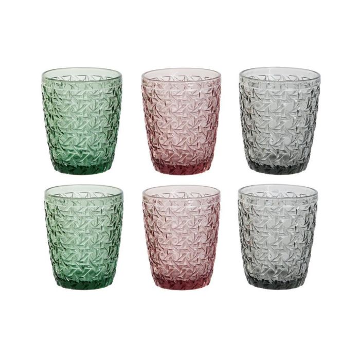 DKD Home Decor Vaso Basicos Set de 6 Verde Rosa Gris Cristal 8 x 10 x 8 cm 240ml Apto Microondas y Lavavajillas