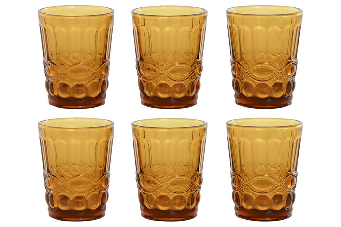 DKD Home Decor Set de 6 Vasos de Cristal Ambar 240ml 8x10x8 cm Colección Classic Garbo