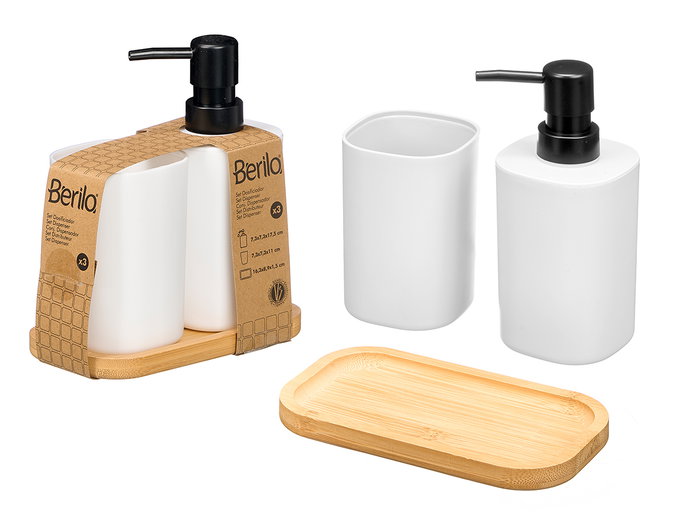 SET DOSIFICADOR VASO BASE BAMBU BLANCO