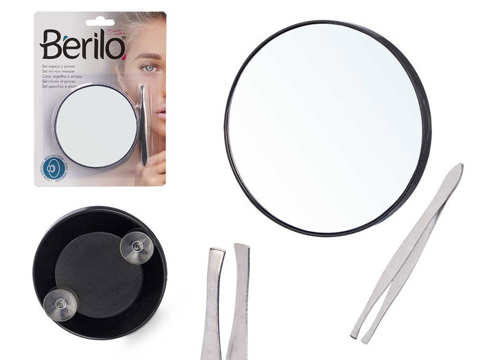 Arte Regal Set Espejo y Pinzas de Maquillaje de Acero Inoxidable, Plata, Aumento x5, Espejo 8.8 cm, Pinzas 8.5 cm, Dimensiones 14x18.5x1.5 cm (Set de 36)