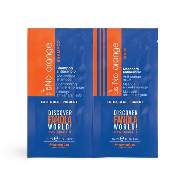 Set Fanola: No Orange, Extra Blue Pigment, Hair Treatment Cream Mask, For Nourishing, 15 ml + No Orange, Extra Blue Pigment, Hair Shampoo, For Nourishing, 15 ml