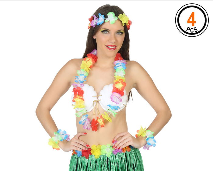 Set Hawaiano Multicolor de 4 Piezas para Fiestas y Celebraciones