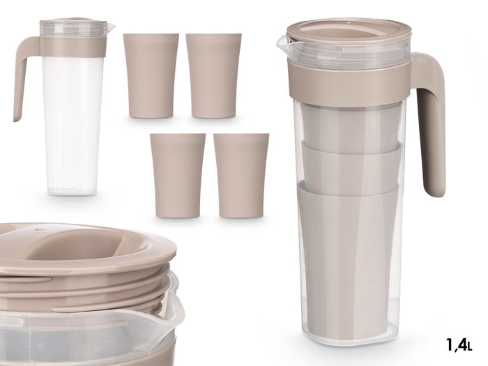 SET JARRA 4 VASOS TAUPE 1,4L