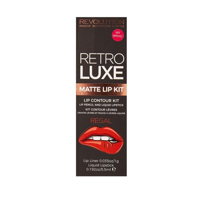 Set Makeup Revolution: Retro Luxe, Lip Liner, Regal, 1 g + Retro Luxe, Matte, Liquid Lipstick, Regal, 5.5 ml