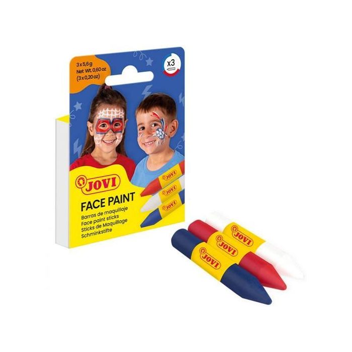 Jovi Maquillaje Estuche 3 Barras Adventure Blanco Rojo Azul para Fiesta Carnaval Halloween Pieles Infantiles Testado Dermatológicamente