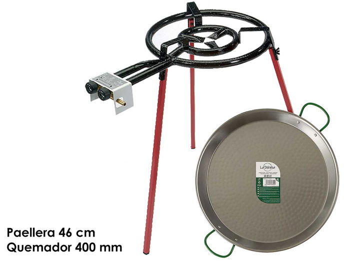 SET PAELLERA PULIDA 46CM QUEMADOR 400MM