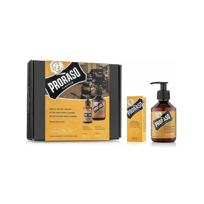 Proraso Set Madera y Especias + Champú Barba y Aceite para Hombre