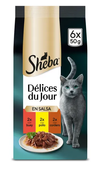 Sheba Delicés Du Jour Carnés: Deliciosa comida húmeda para gatos en formato de 12 latas pequeñas de 50 gramos cada una. Una oferta completa de 12 porciones individuales, ideal para ofrecer variedad y sabor a tu mascota. Producto de la reconocida marca Mars, diseñado para satisfacer los paladares más exigentes. Perfecto como premio ocasional o para complementar la dieta diaria de tu gato con una textura suave y sabrosa.